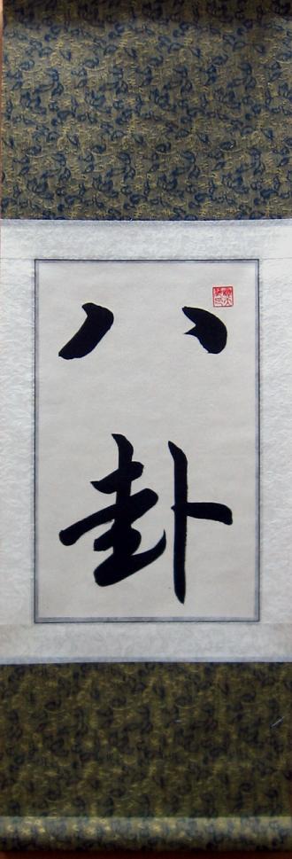 The Chinese character for Bagua calligraphy painting was painted by Beijing, China artist Xie Tian Hai (thank, sky, sea) and measures 11x35 inches.